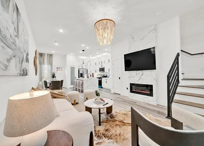 Nestled just minutes away from the heart of Houston, the Modern Gated Townhome offers an impeccable blend of luxury and convenience. This stylish residence is ideally located just 5 minutes from both the renowned NRG Park and the Texas Medical Center, ensuring you're never far from the city's vibrant pulse. With a driving distance of only 20 km from William P. Hobby Airport, the Modern Gated Townhome provides an effortless arrival experience for both business and leisure travelers. Exceptional services are at your fingertips here. The property boasts a secure gated entrance, providing peace of mind, while on-site conveniences ensure a smooth stay without the fuss. For those needing to travel beyond immediate attractions, the convenient proximity to Ensemble/HCC (only 9 km away) offers additional cultural and educational opportunities. Lastly, the townhome's strategic location allows easy access to major city attractions and transport links within Houston. With everything you need just a stone's throw away, including convenient routes to NRG Park and downtown destinations, you're perfectly positioned to appreciate all that this dynamic city has to offer.